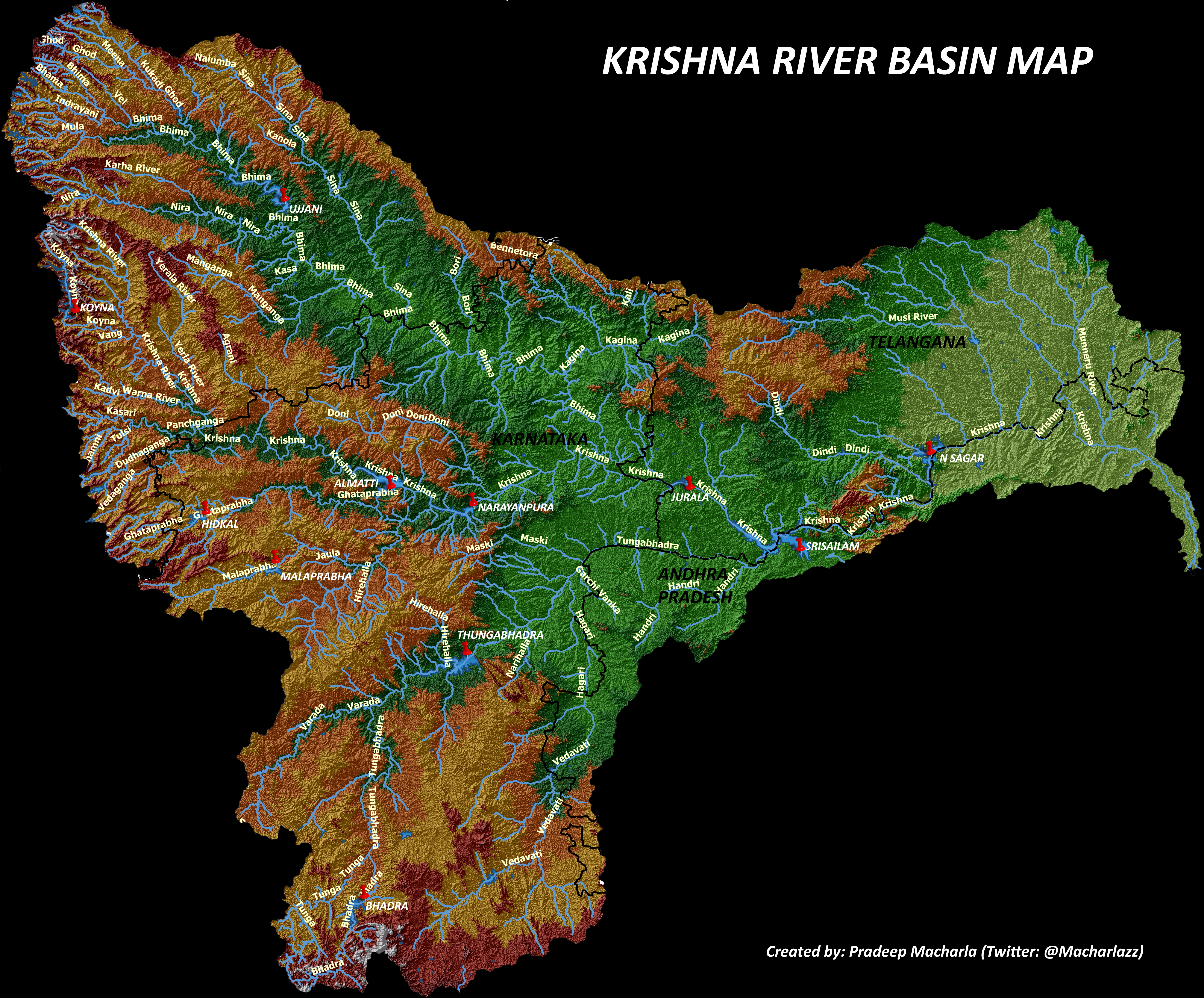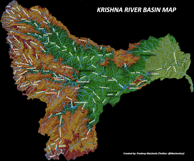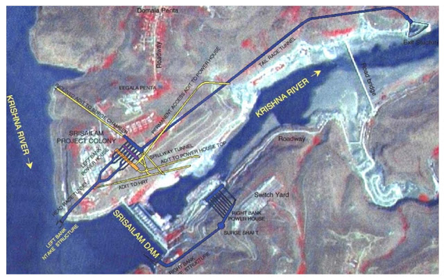 Srisailam dam is located in the middle of the Nagarjuna Sagar-Srisailam Tiger Reserve, the largest tiger reserve in India. Srisailam dam is also called as Neelam Sanjiva Reddy Sagar Project (NSRSP), named in honor of the first Chief Minister of Andhra Pradesh, Late Neelam Sanjiva Reddy (1956-60 and 1962-64). Though the dam acts as bridge between two states, the maintenance is under the control of Kurnool District, Irrigation Department of Andhra Pradesh. The mega project was constructed across river the Krishna which is the fourth largest and second largest river in India and South India, respectively with ~1288km length of which ~720km in AP and TS. The river originates in the Western Ghats of Mahablaeswar, Maharashtra and terminates in Hamsaladeevi, Krishna district of AP. Four states (MH, KA, TS and AP) are dependent on the Krishna water for irrigation and hydroelectric power generation. Several dams are constructed across the Krishna river since independence.