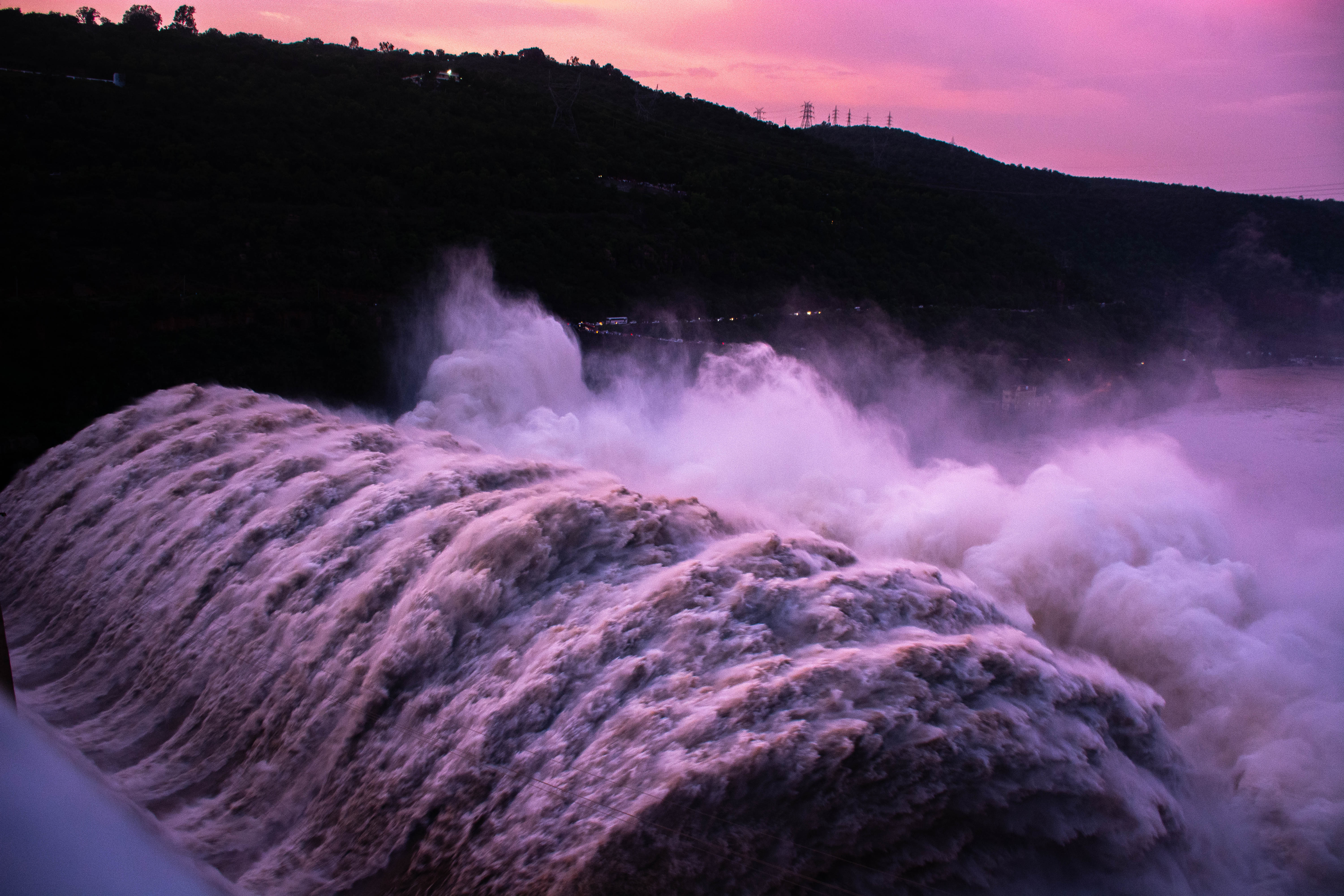 the impact of water from spillway gates. |
