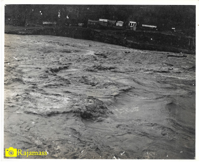 | Top and Bottom images show water flow over D/S concrete wall during floods in river the Krishna dated 29-July-1967 4PM |